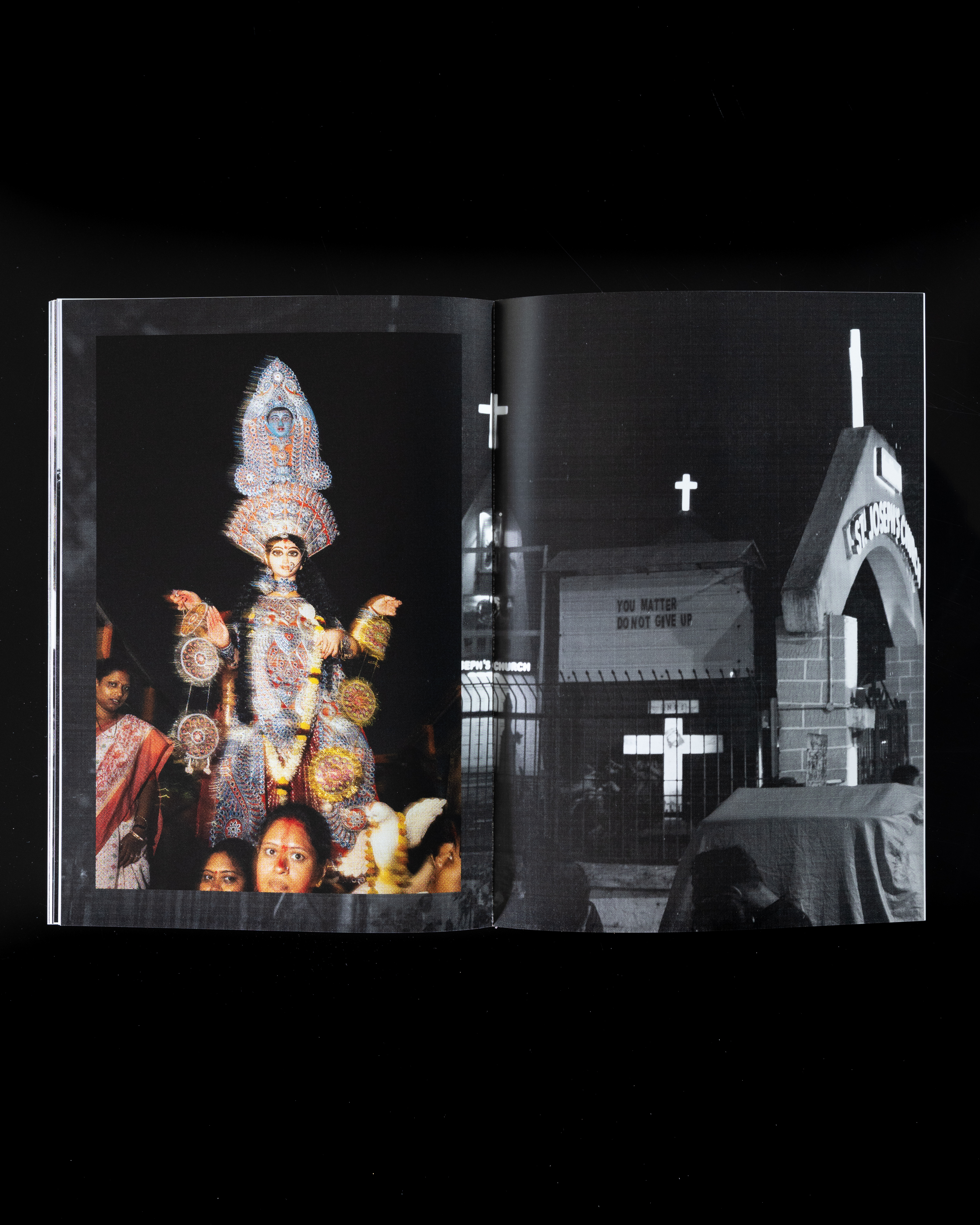 Cow Corner is a photographic exploration by Vikram Valluri and designed by Ajay Gallardo capturing cricket's influence on India during the Cricket World Cup 2023. The journey extends through Pune, Ahmedabad, Delhi, Mumbai, and Ladakh, showcasing cricket as an integral part of life beyond sport. The pages feature images treated to give the appearance of photographs that have been printed, handled, and weathered, providing a genuine, tactile feel. These visuals seem as if they have been passed among fans, becoming worn and cherished over time. Cow Corner uncovers cricket's role in transcending cultural, political, and religious divides, offering a unique glimpse into the sport's deep resonance across India.